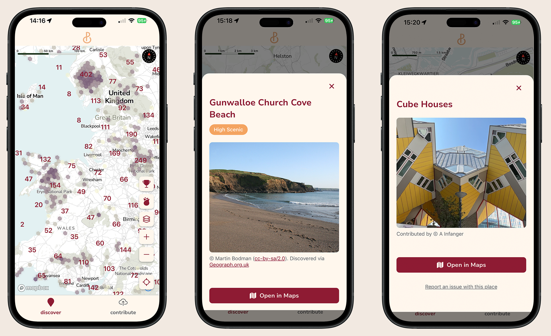 The 1 Million Beautiful Places project uses crowdsourced data and cutting-edge AI, including multimodal LLMs, to rapidly identify and map beautiful places from both existing image archives and user contributions - the technological breakthrough that makes cataloguing one million places possible for the first time. As a non-profit Community Interest Company, Beautiful Places AI is treating data on the beauty of places as critical infrastructure that's been notably absent from economic and policy decisions. They have already successfully mapped over 90% of the UK and Ireland thanks to Geograph.org.uk sharing their repository of 8 million images. With the help of early testers, beautiful places from all around the world, including Japan, Singapore, France, the Netherlands, Morocco and Australia, are already included.